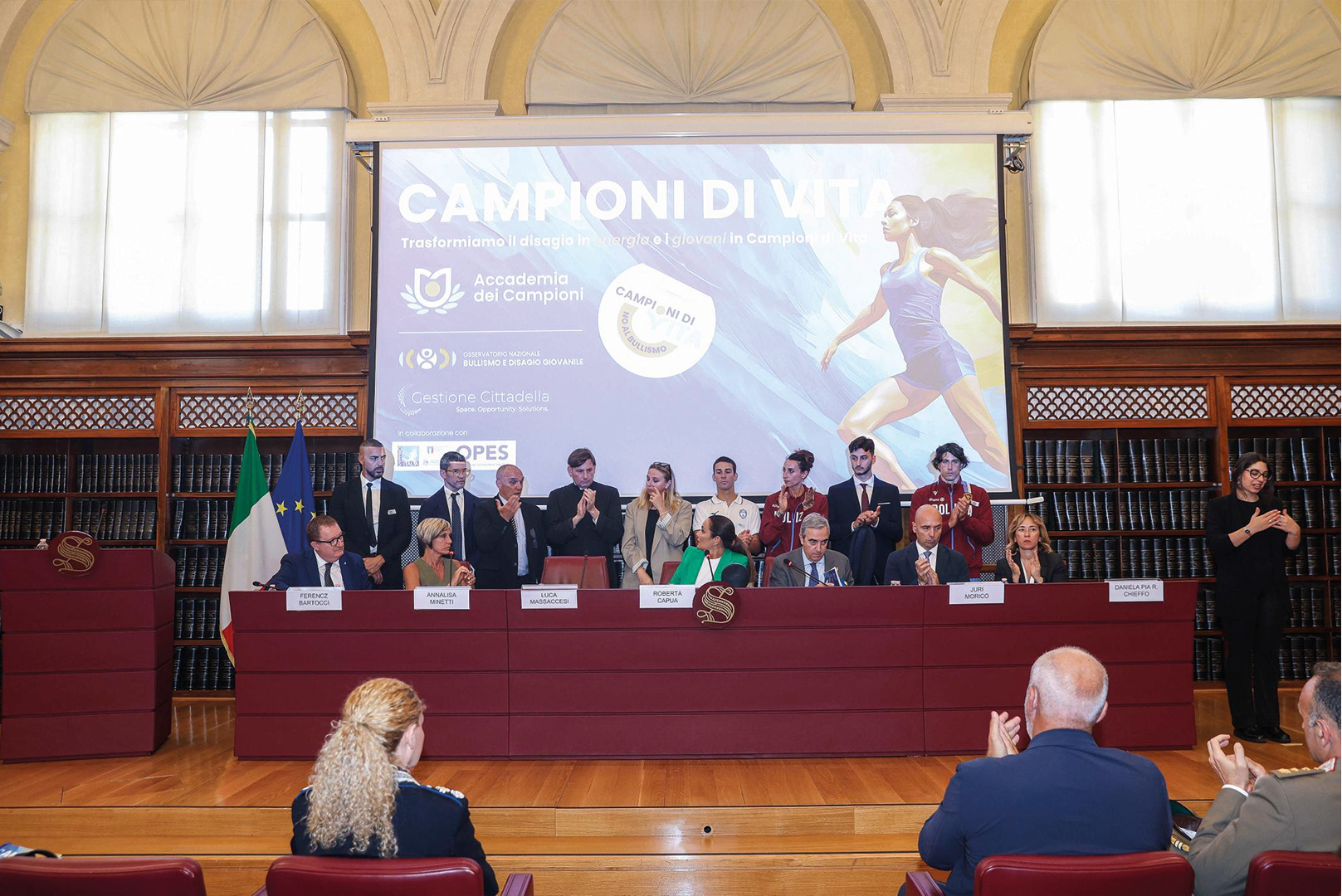 Lunedì 17 giugno, alle ore 11:00, presso la Sala Koch di Palazzo Madama – Senato della Repubblica, alla presenza di numerose autorità civili, politiche e militari, si è svolto l’evento di presentazione del progetto Campioni di Vita – no al bullismo dell’Accademia dei Campioni. L’evento, nato dalla partnership tra l’Osservatorio Nazionale Bullismo e Disagio Giovanile e Gestione Cittadella Srl, in collaborazione con Opes Italia, ha visto la partecipazione, tra gli altri, di tanti Campioni dello sport che si sono distinti in varie discipline.